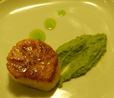 Pan Seared Scallops with Pea Puree and Mint Oil