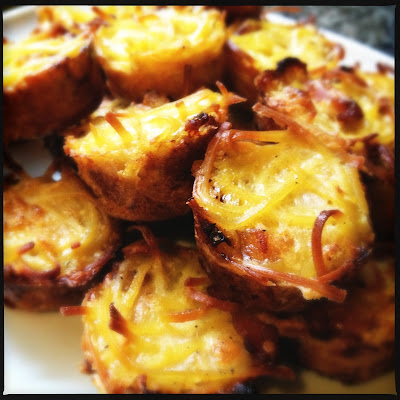 4. Spoon mixture into a mini muffin tin and lightly press down. I wanted to sprinkle extra cheese on top, but as you can see I forgot… They were still good without it, but a crunchy, cheesy crust would’ve been nice!